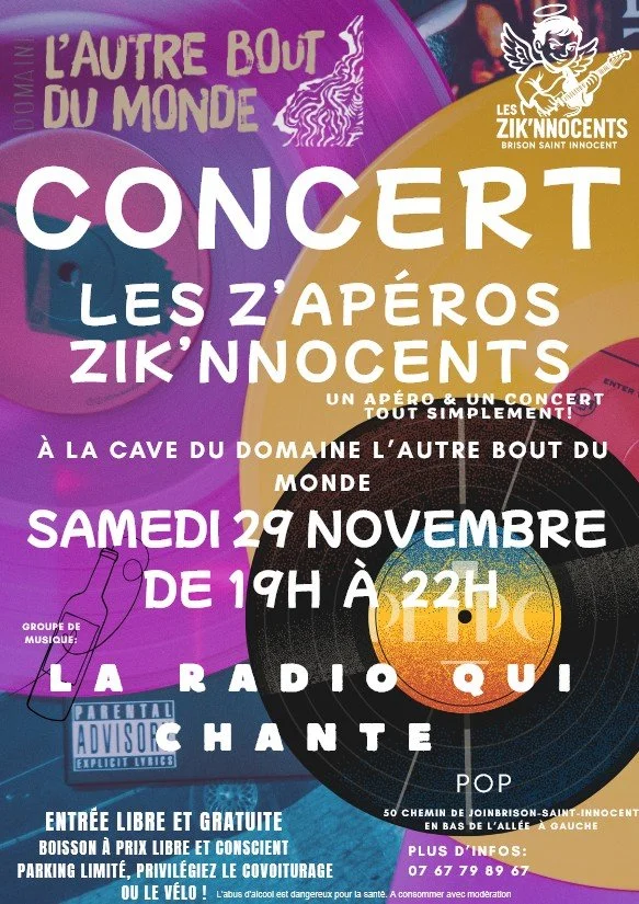 Un apéro, un concert tout simplement avec une partie du collectif des Zik’nnocents : la radio qui chante. Venez nous retrouver pour un moment vino-pop à la cave!!